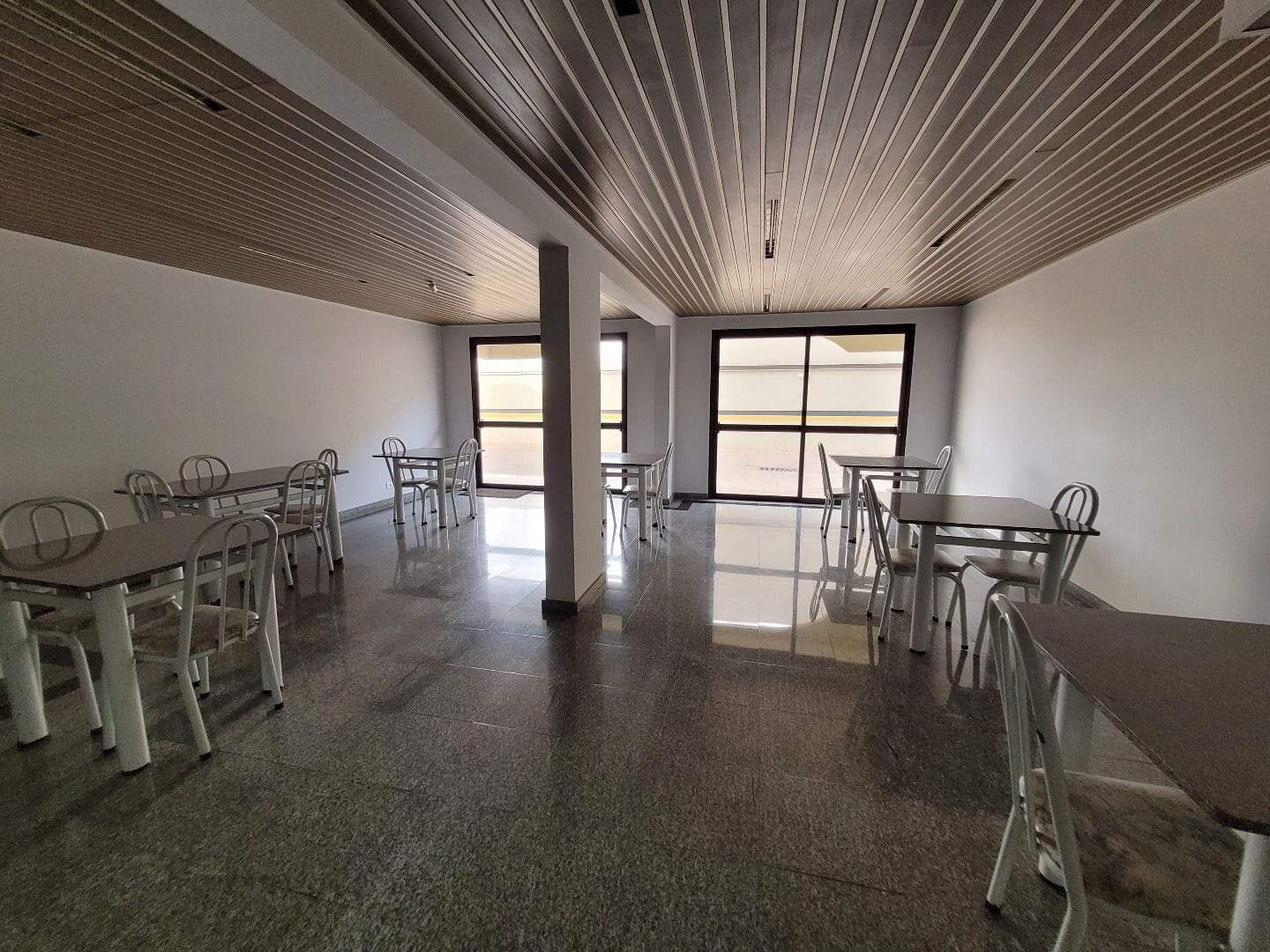 O condomínio dispõe de salão de festas e sistema de portaria.