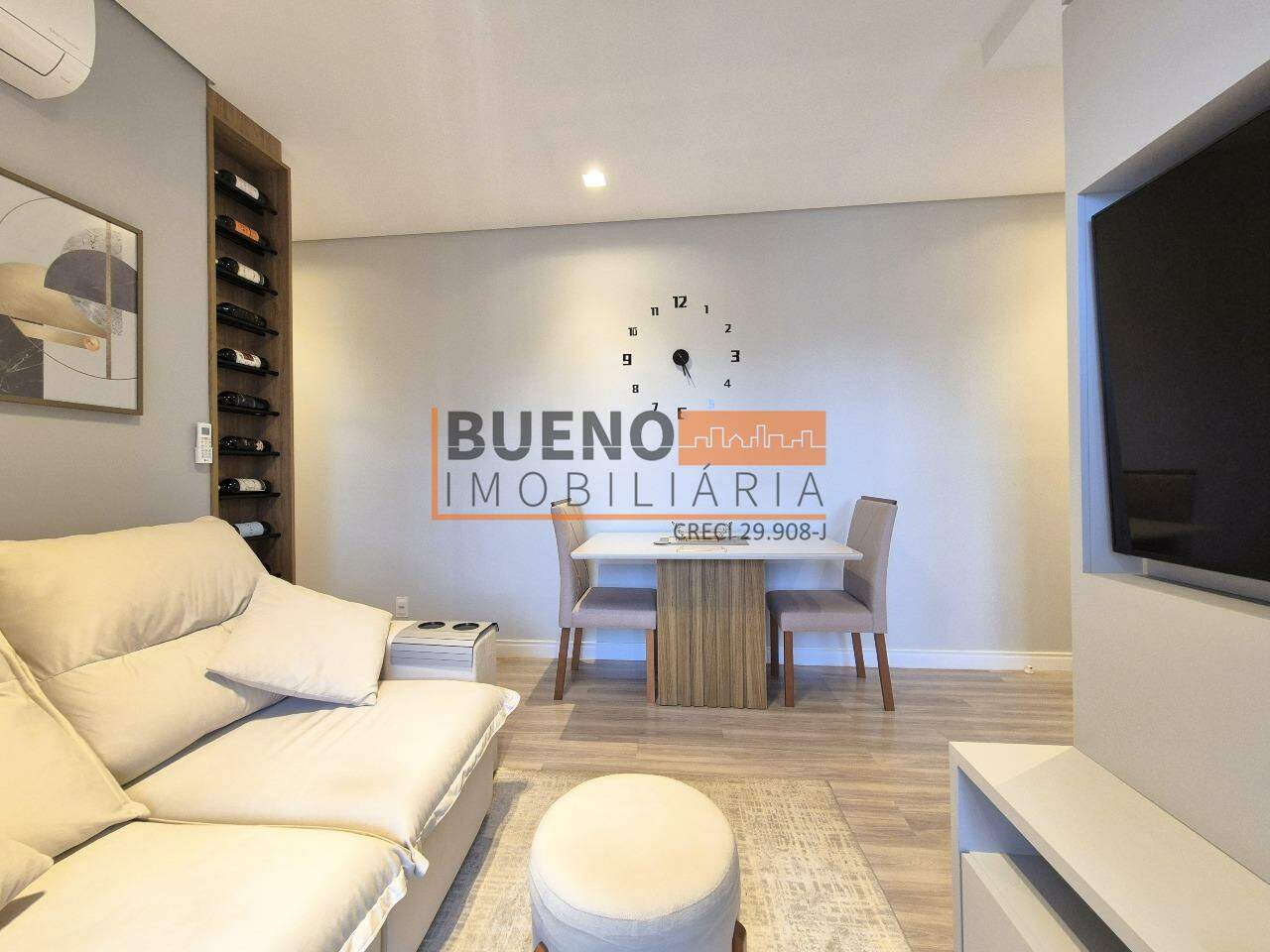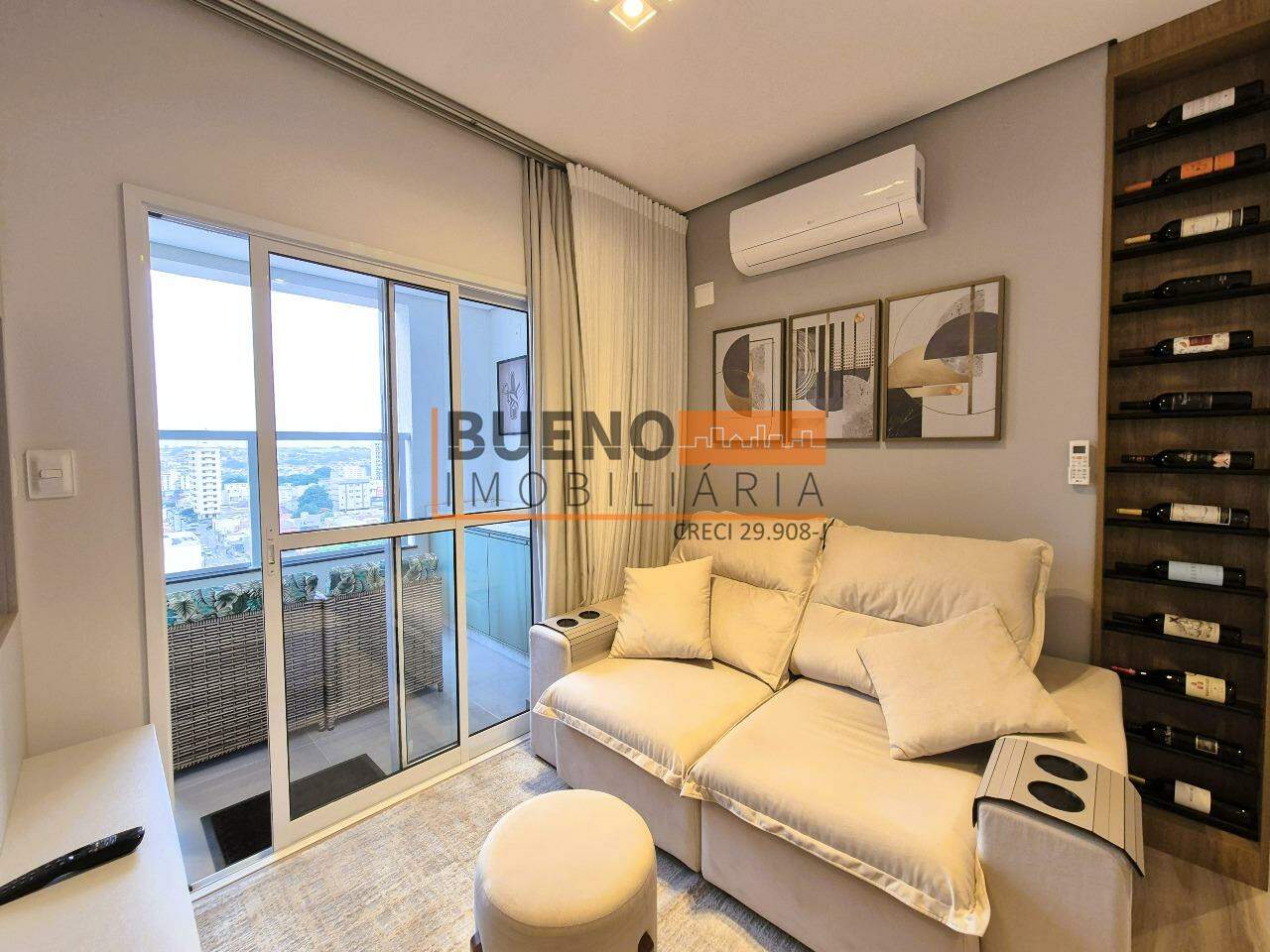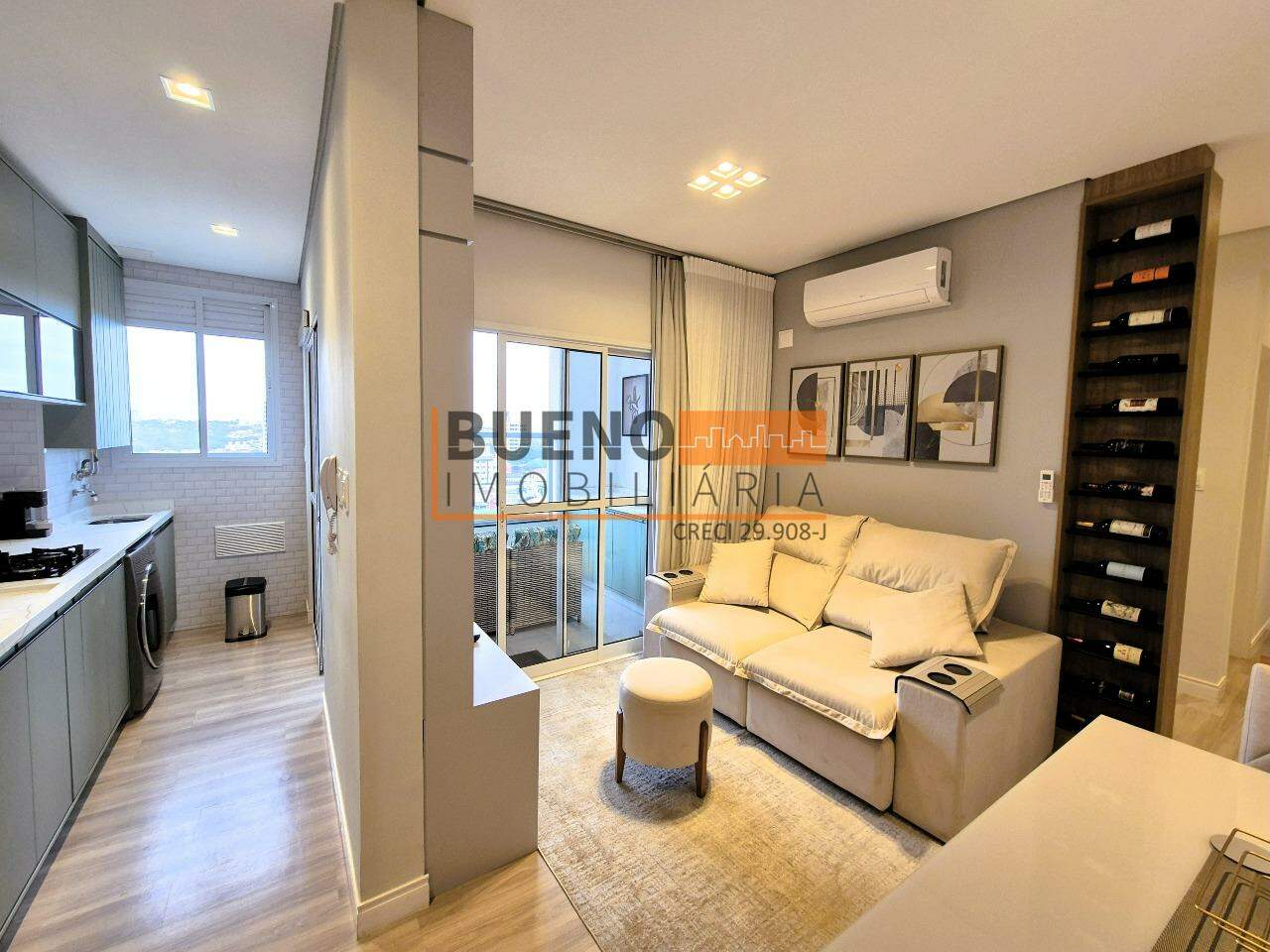 O apartamento possui fechadura digital de acesso, cozinha e lavanderia integradas, totalmente equipadas com eletrodomésticos, armários planejados e aquecedor Rinnai. A sala de jantar e estar integradas são mobiliadas, climatizadas e decoradas, com cortina blackout, smart TV 50 polegadas; e adega vertical. A ampla sacada gourmet é mobiliada, planejada, com vista livre para o centro e sol da manhã.