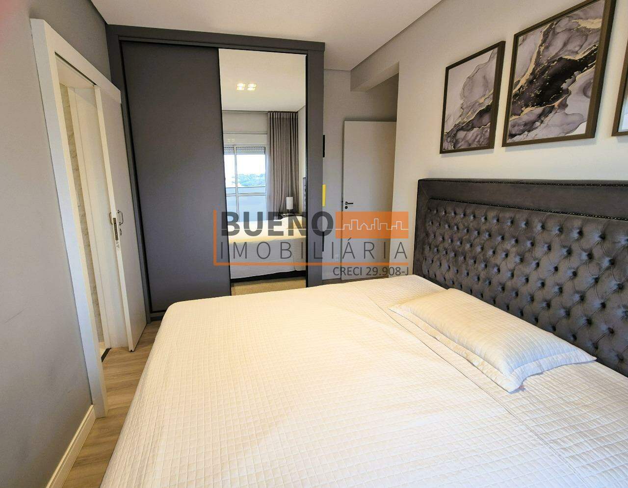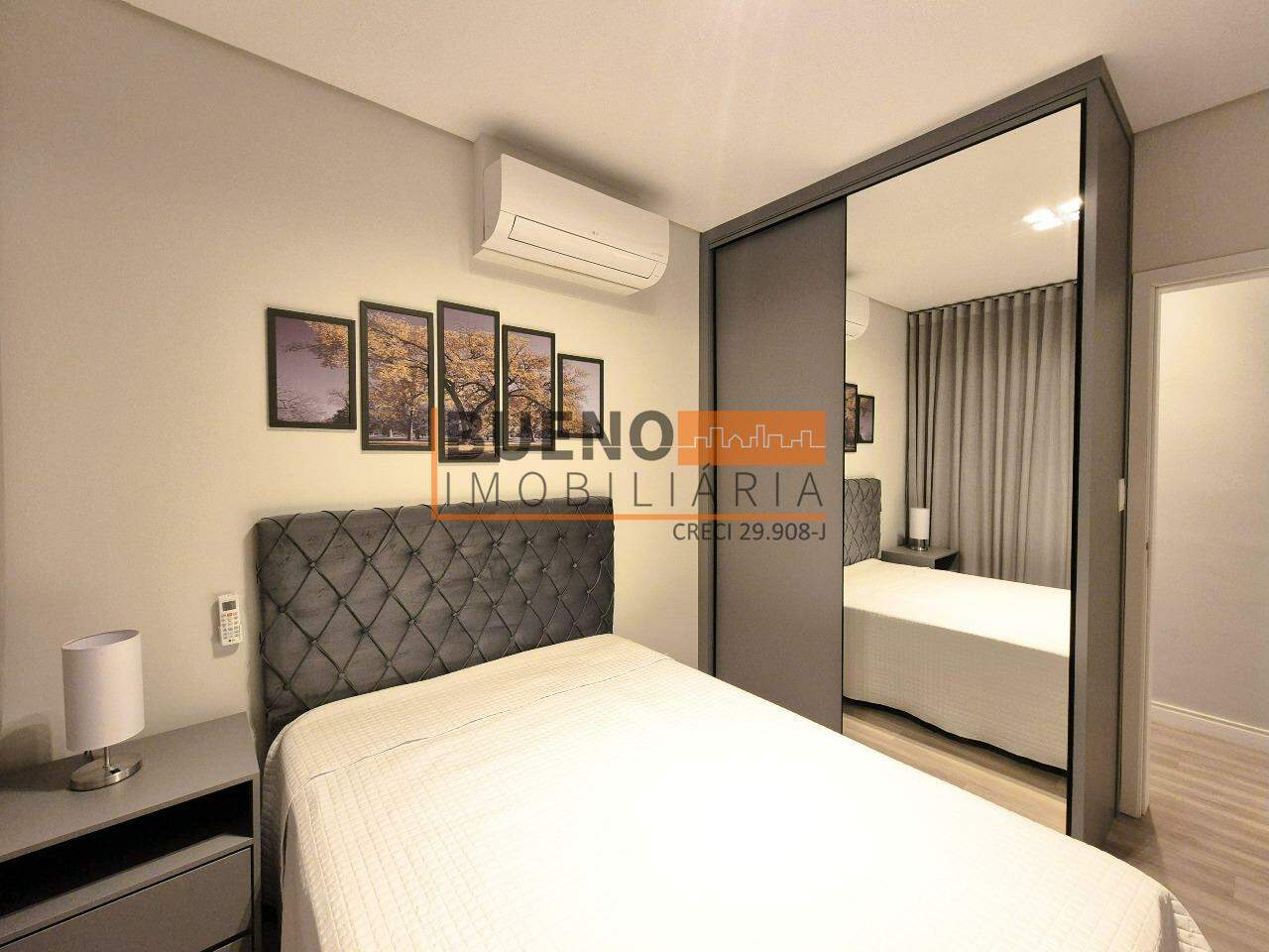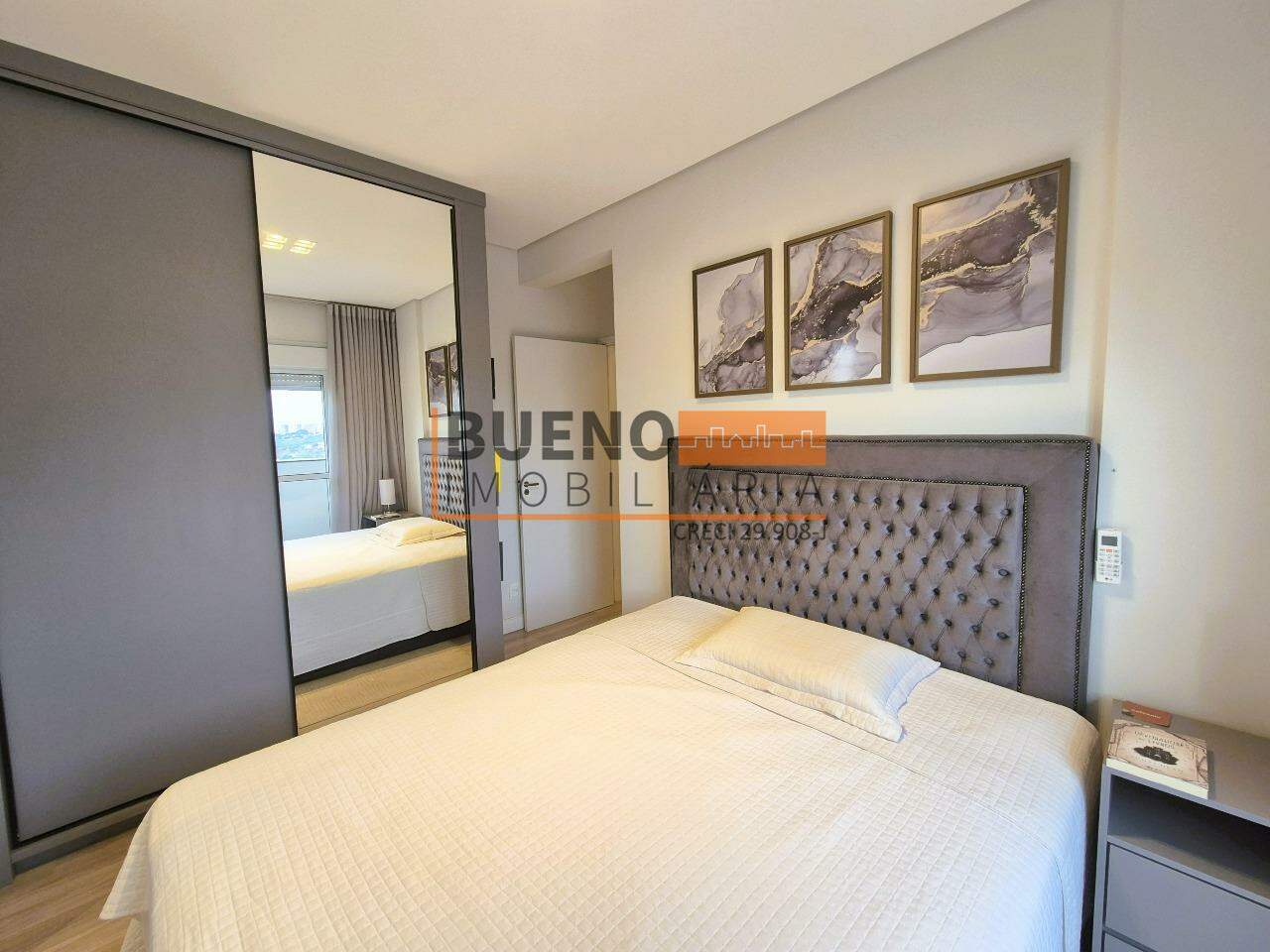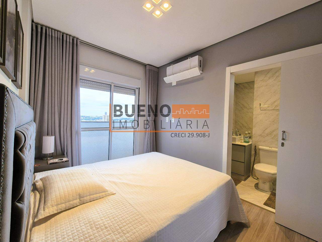 O dormitório de hóspedes é mobiliado, decorado, climatizado, com guarda-roupa planejado espelhado e cortina blackout. A suíte completa conta com guarda-roupa planejado, cama queen, decoração refinada, climatização, sacada com vista panorâmica e banheiro suíte com ventilação natural, box, gabinete e ducha de qualidade. O piso vinílico de alto padrão e o teto rebaixado em gesso com iluminação em LED completam o apartamento, que ainda conta com internet de alta velocidade, gás encanado e aquecimento em todas as torneiras e duchas.