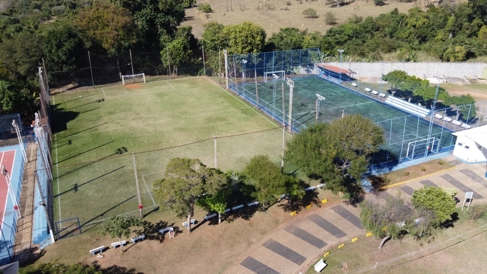 - Esportes: 4 campos de futebol, 2 quadras de tênis, quadra poliesportiva e 2 campos de bocha.