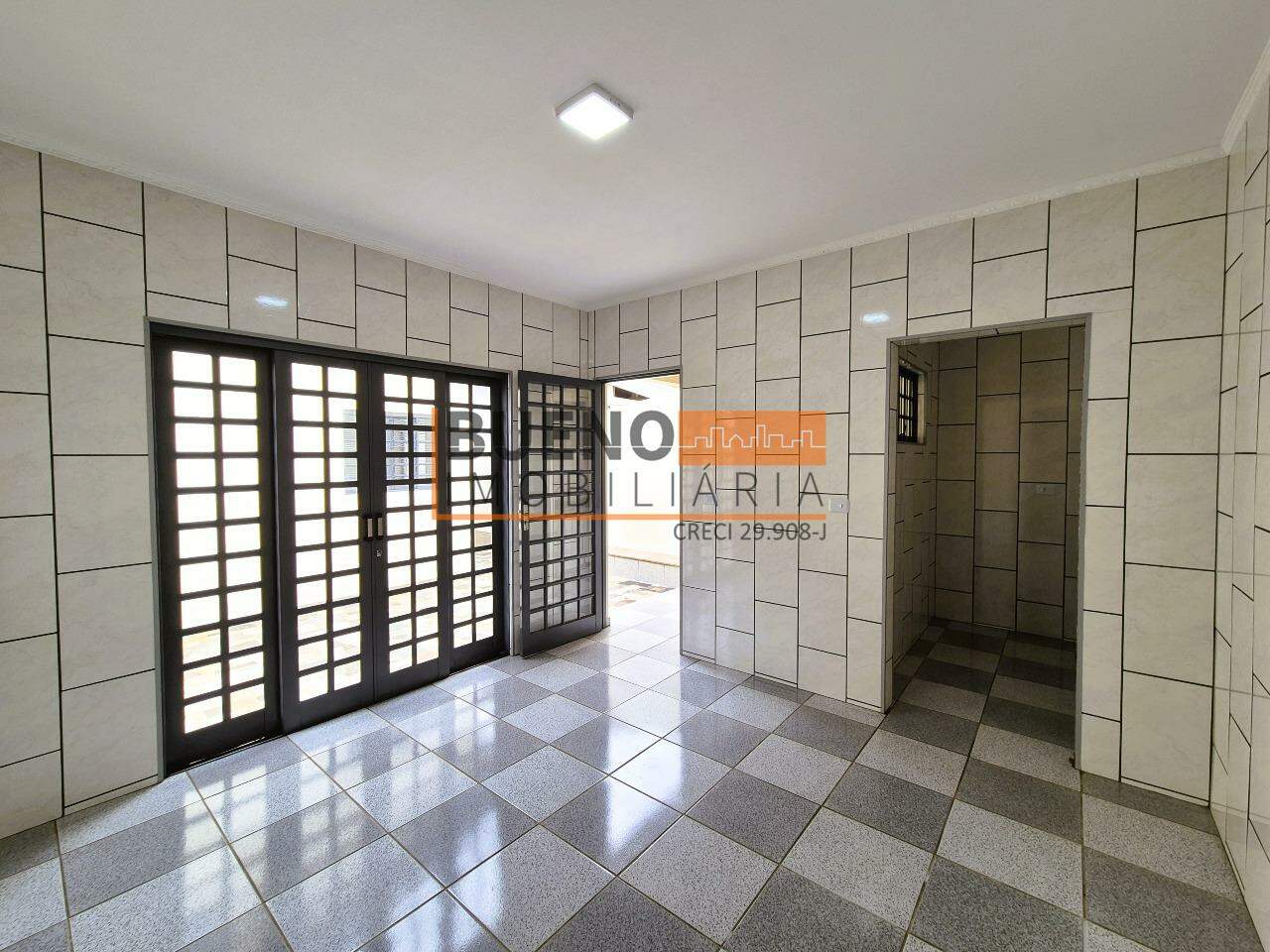 Na parte da frente são 2 quartos e um banheiro amplo, além da sala de estar muito espaçosa já com um belo lustre.