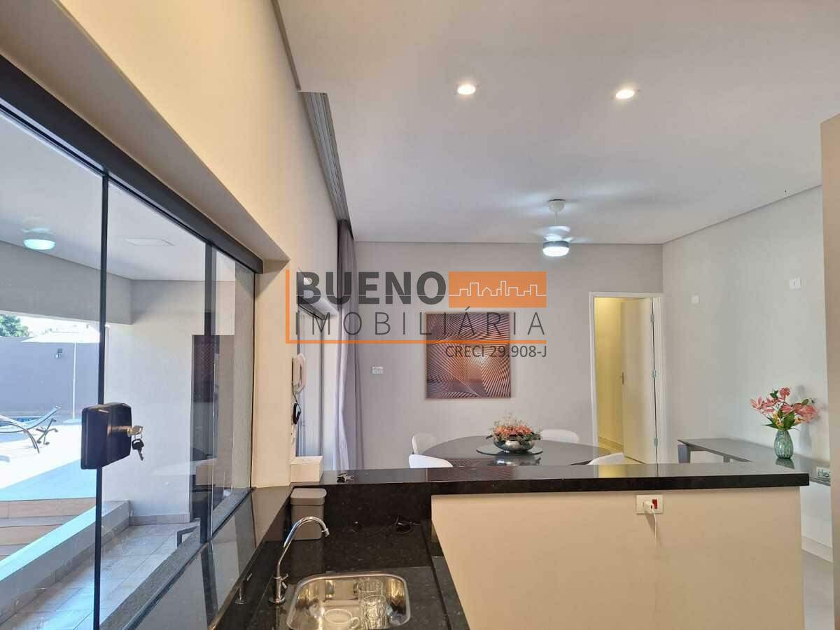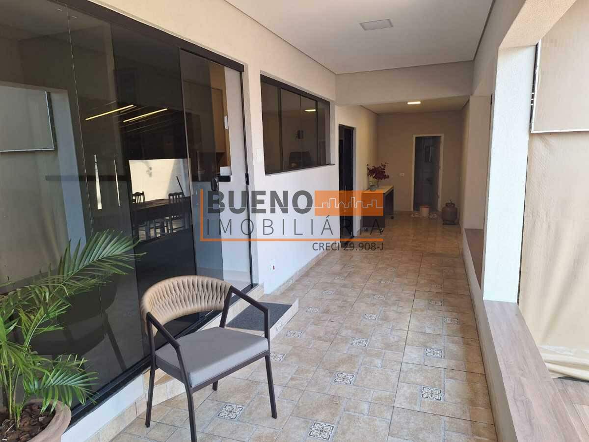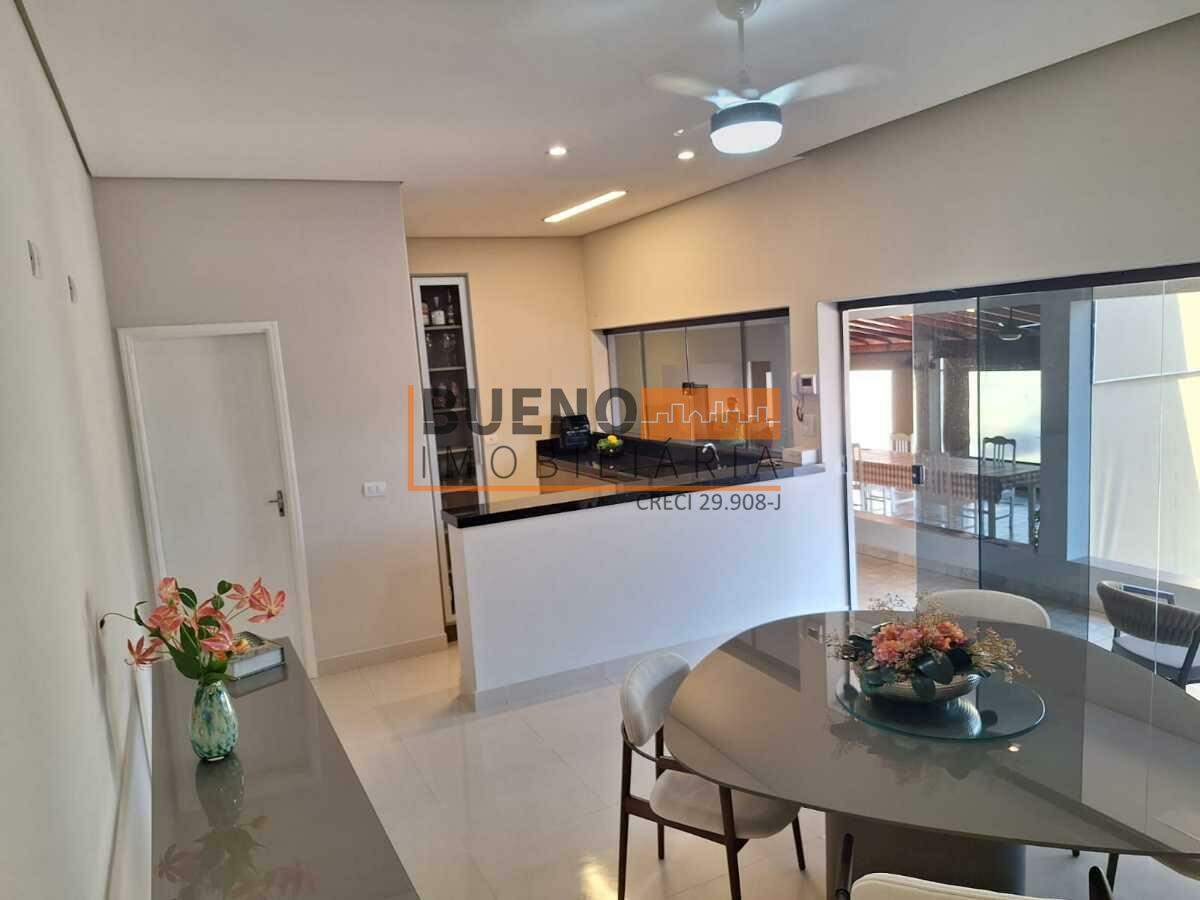 A casa dispõe de 3 quartos, sendo 2 suítes — ambas com ar-condicionado, ventilador e armários planejados e 1 dormitório adicional e mais 2 banheiros sociais. A área social é integrada, com sala de jantar e cozinha equipadas com armários, despensa com armários, lavanderia e uma ampla área gourmet com churrasqueira, armários e ventiladores, perfeita para receber família e amigos.