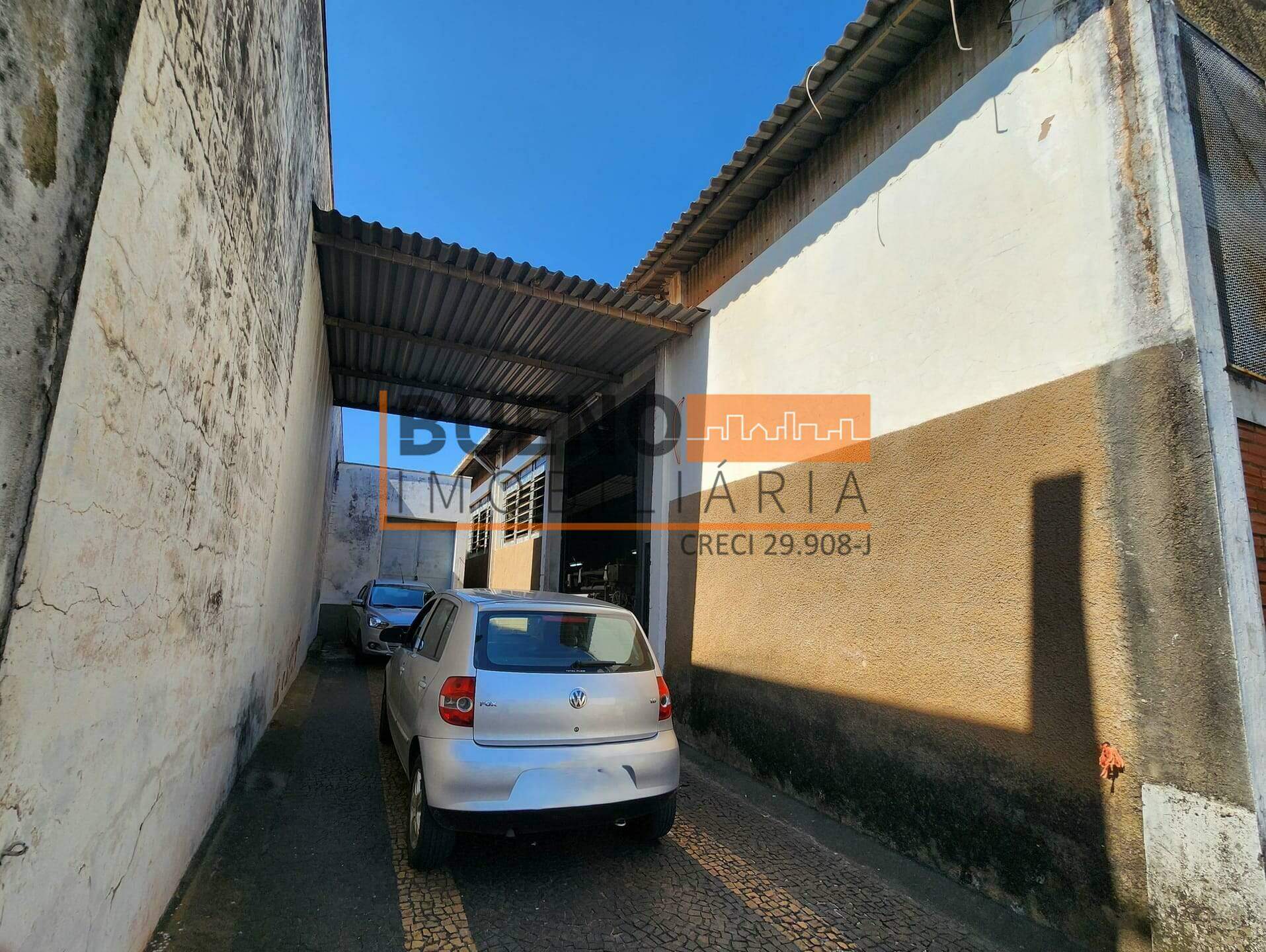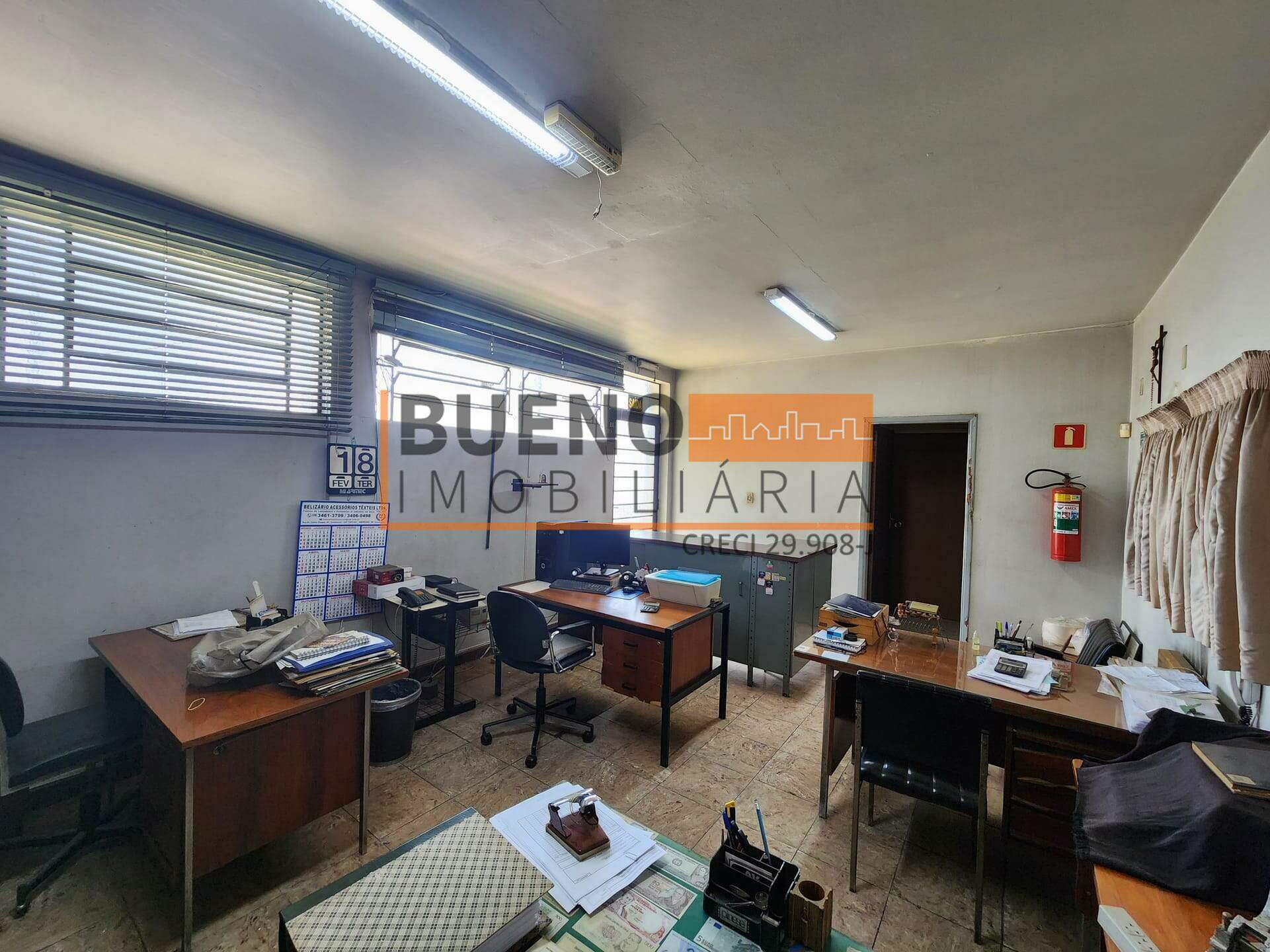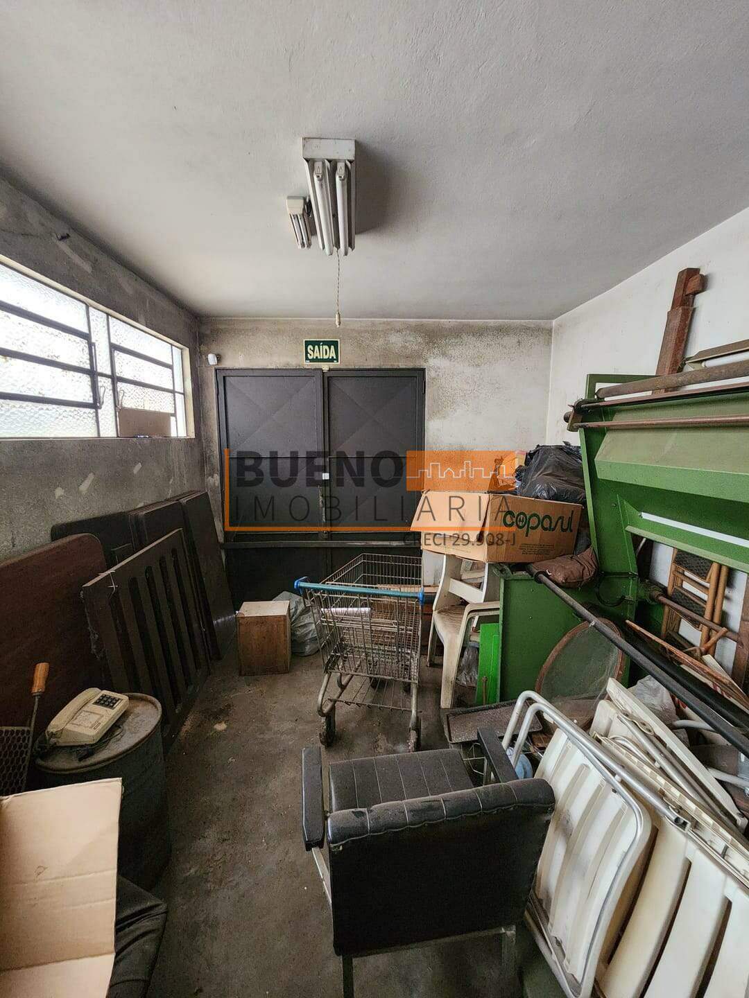O barracão conta com espaço para escritório e espaço para estoque de mercadorias com porta para descarregar caminhão.