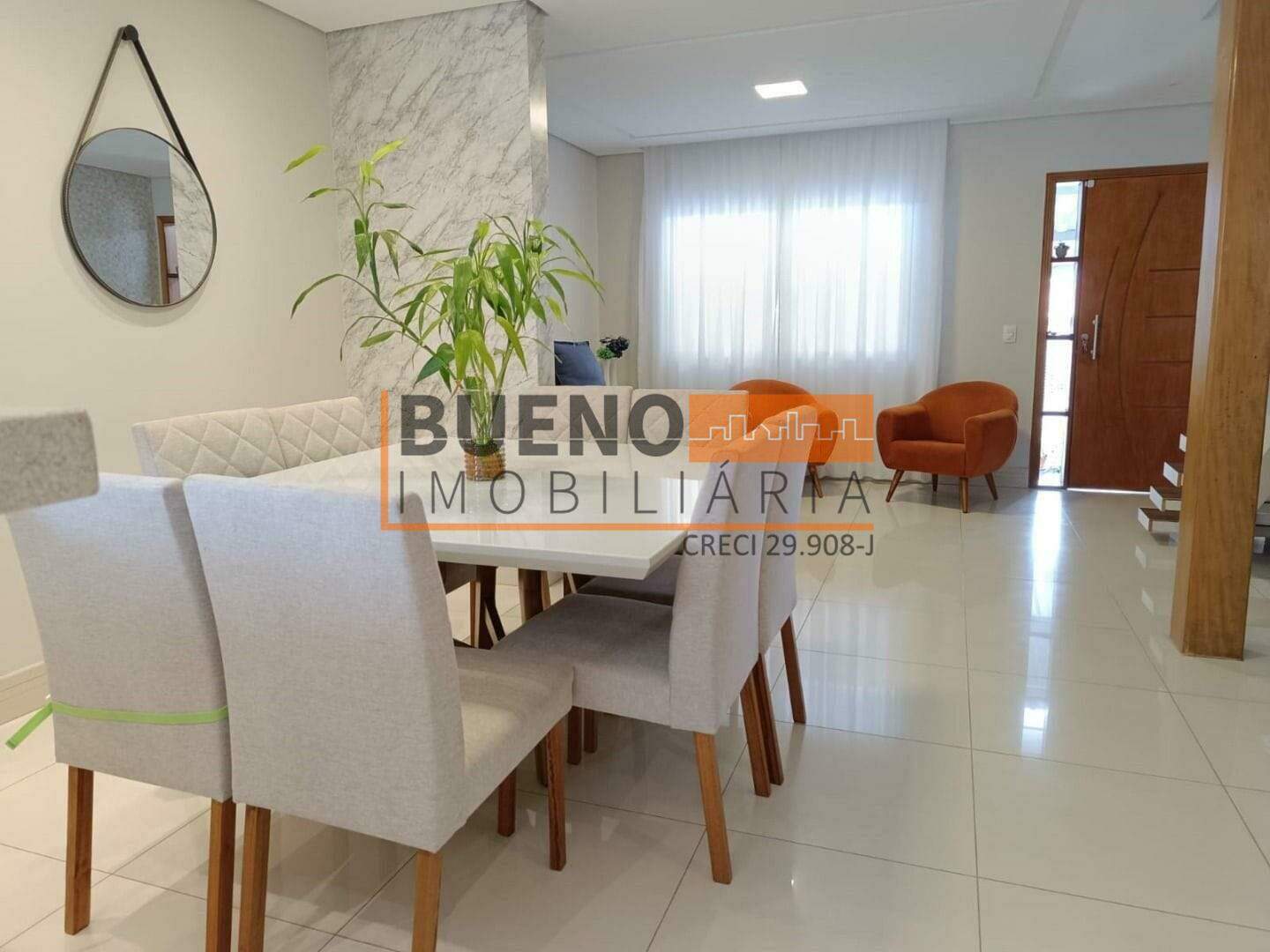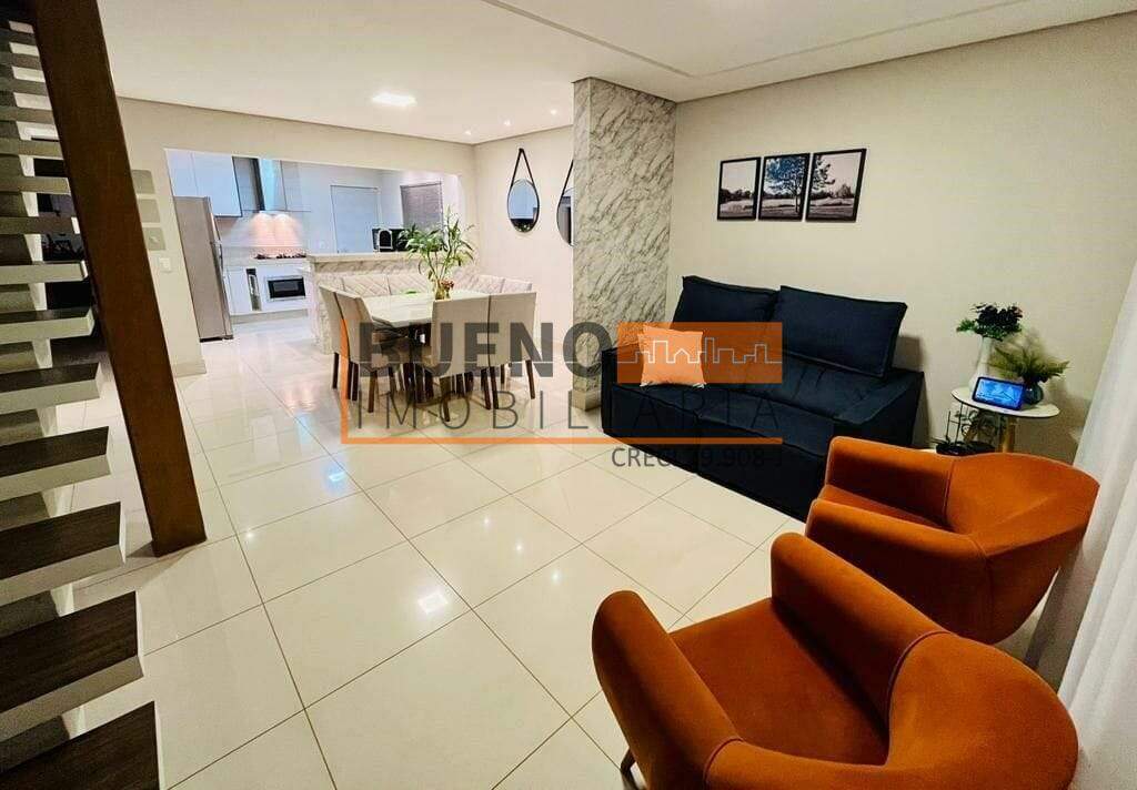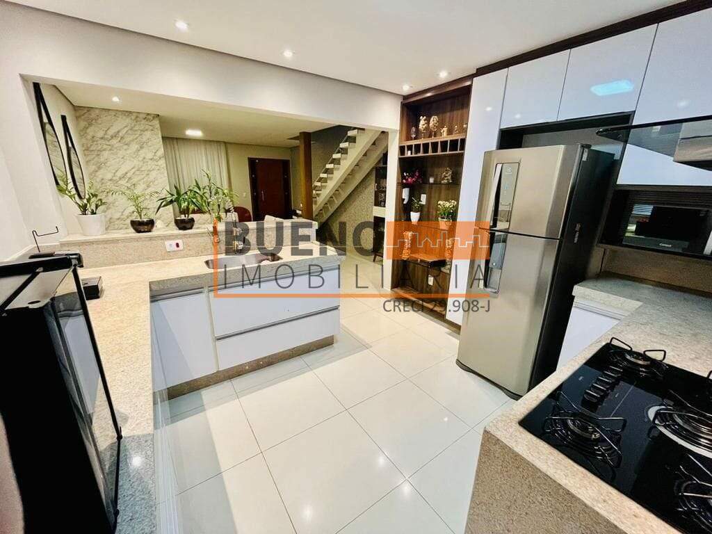 A residência conta com 03 dormitórios, sendo uma suíte, um banheiro social, um lavabo, cozinha, 2 salas amplas, área de serviço, garagem com 2 vagas e ampla varanda na parte superior. Piso e revestimento interno em porcelanato. detalhes em gesso e iluminação em LED com spots.