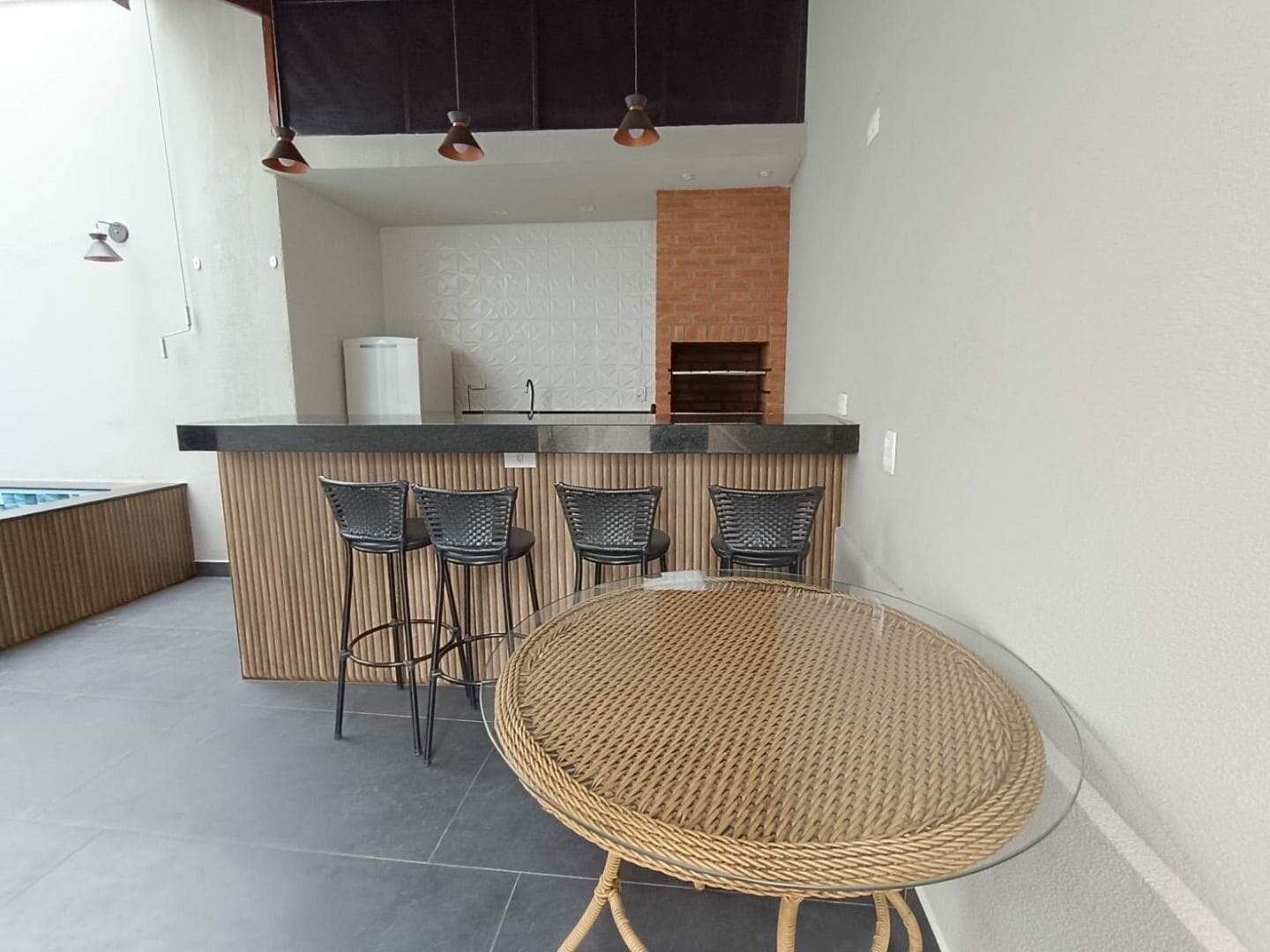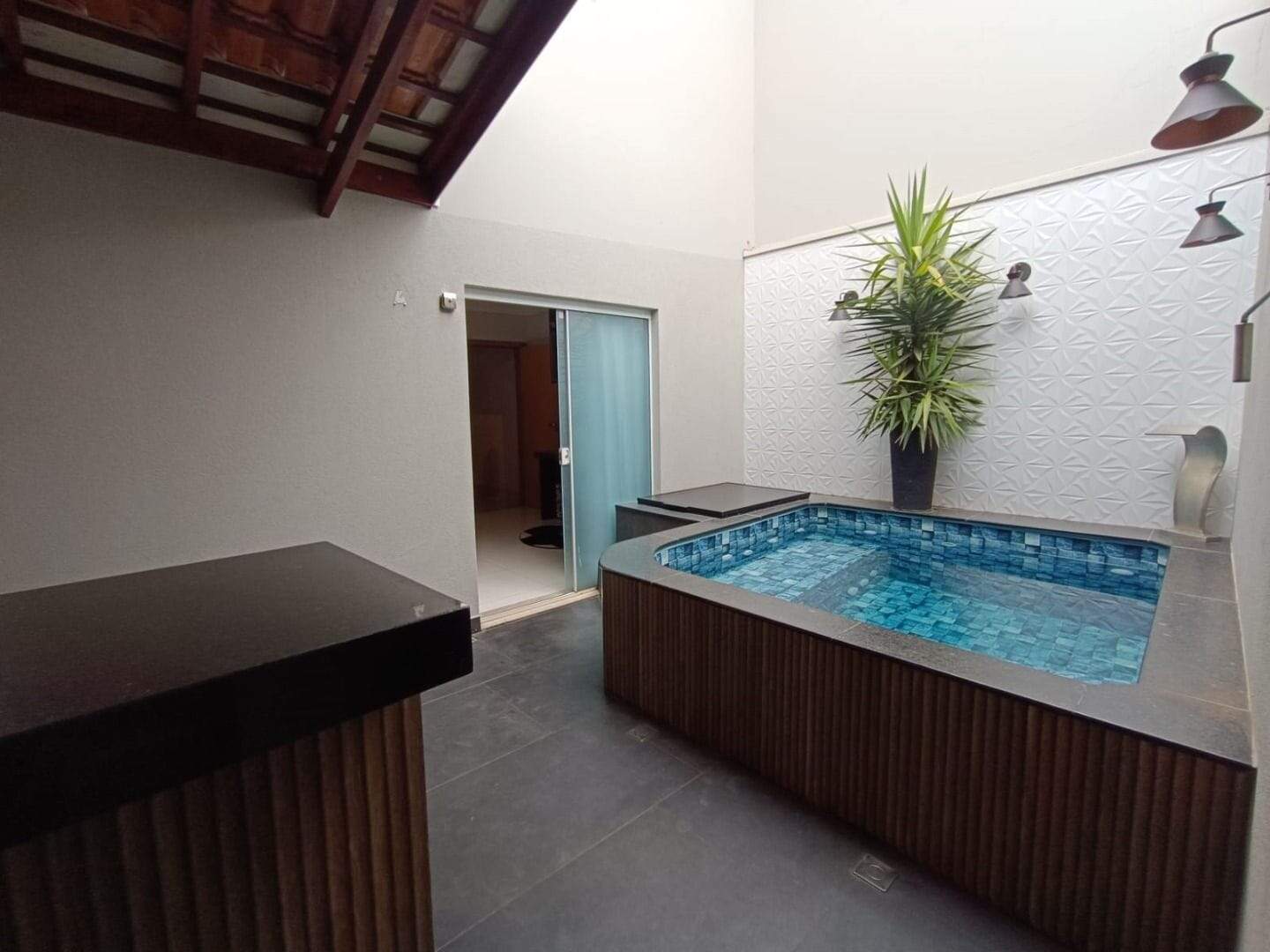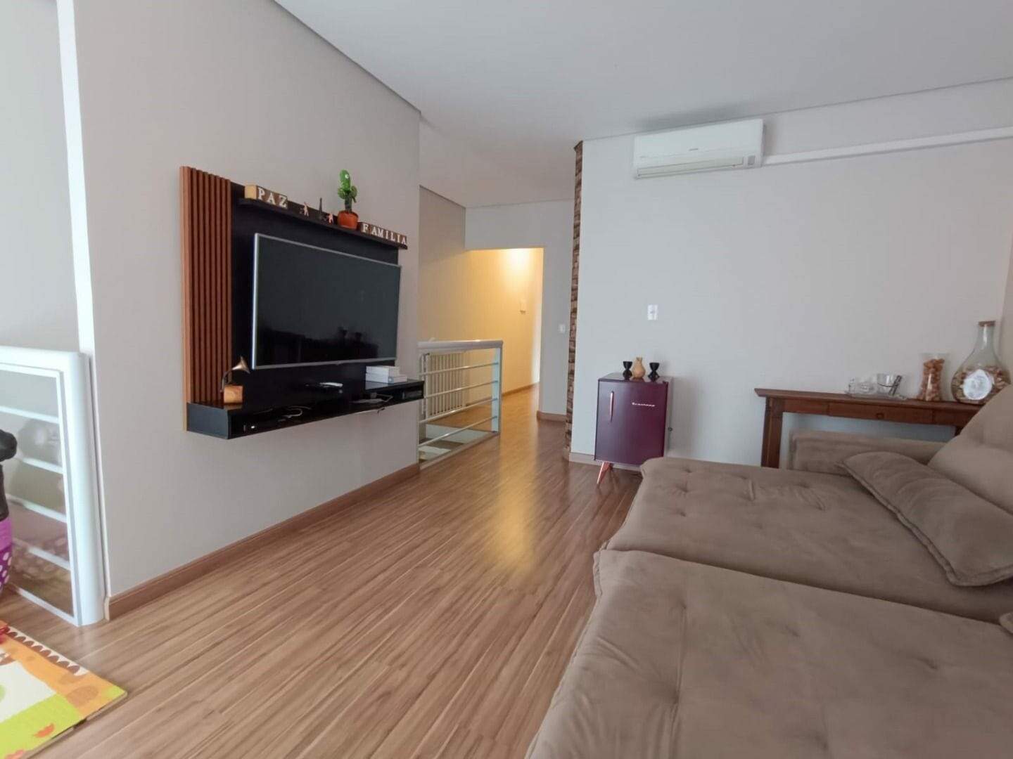 A residência conta com 03 dormitórios, sendo uma suíte, um banheiro social, um lavabo, cozinha, 2 salas amplas, área de serviço, garagem com 2 vagas e ampla varanda na parte superior. Piso e revestimento interno em porcelanato. detalhes em gesso e iluminação em LED com spots.