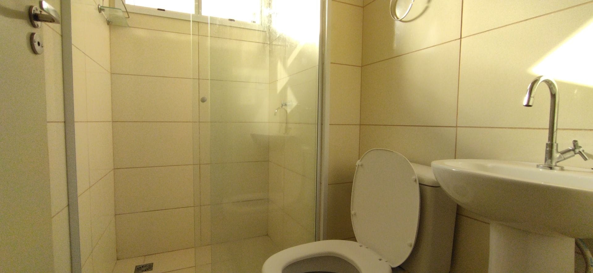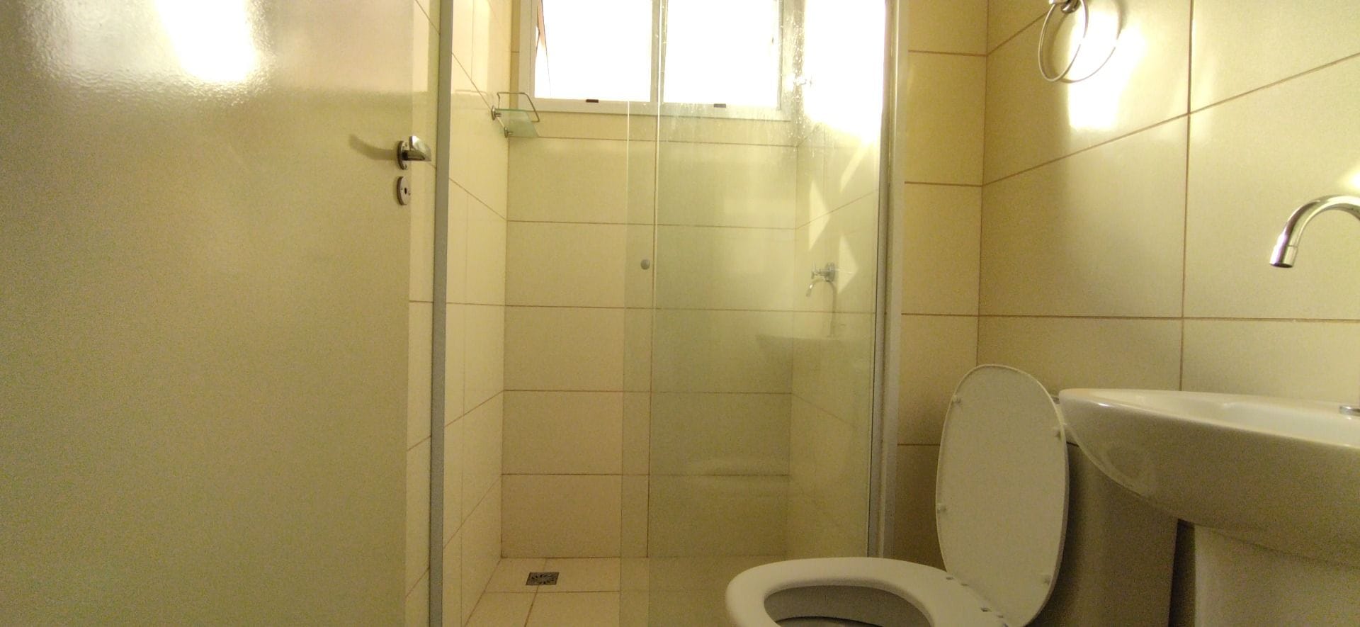 Banheiro completo com box e armário;