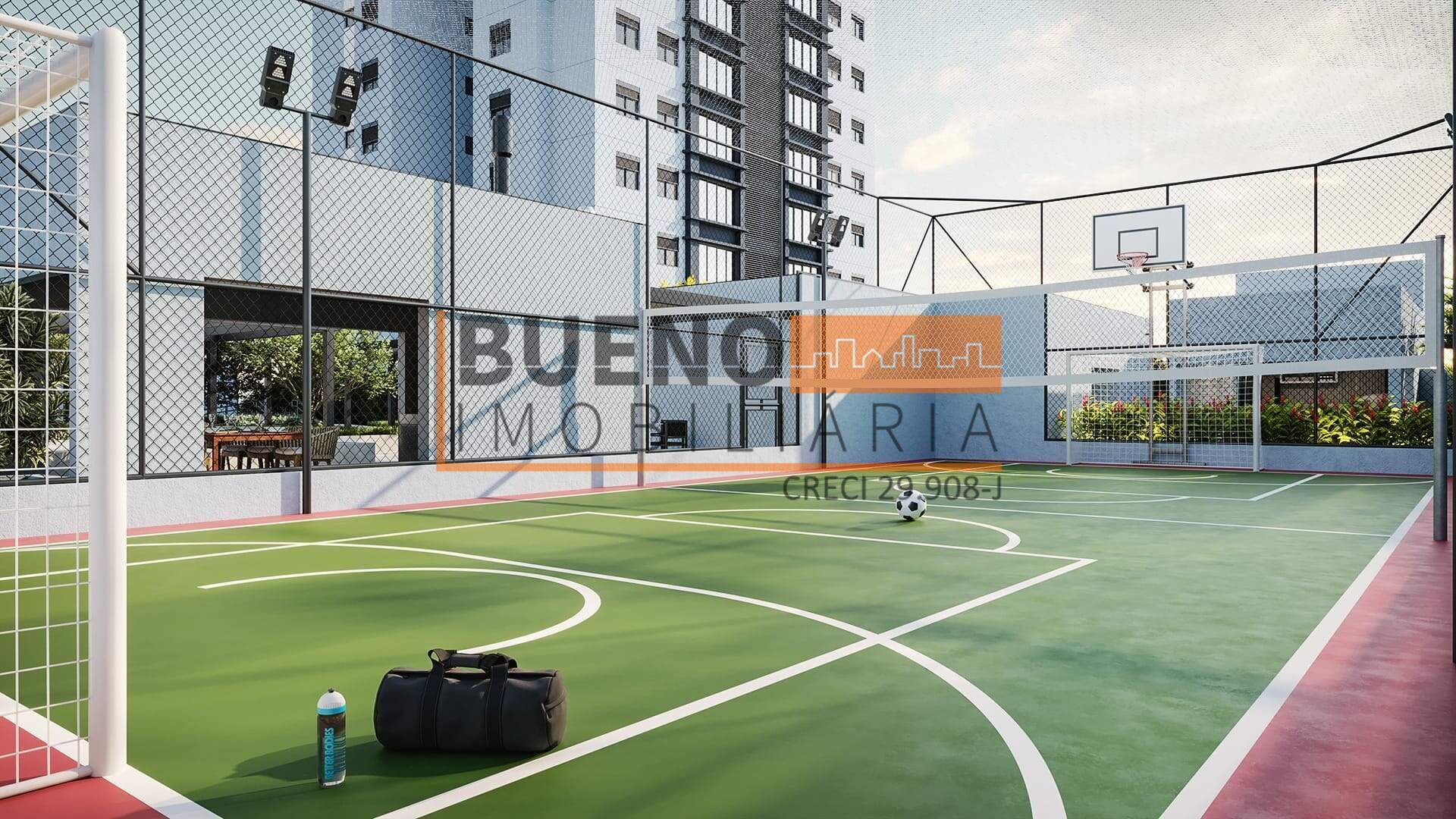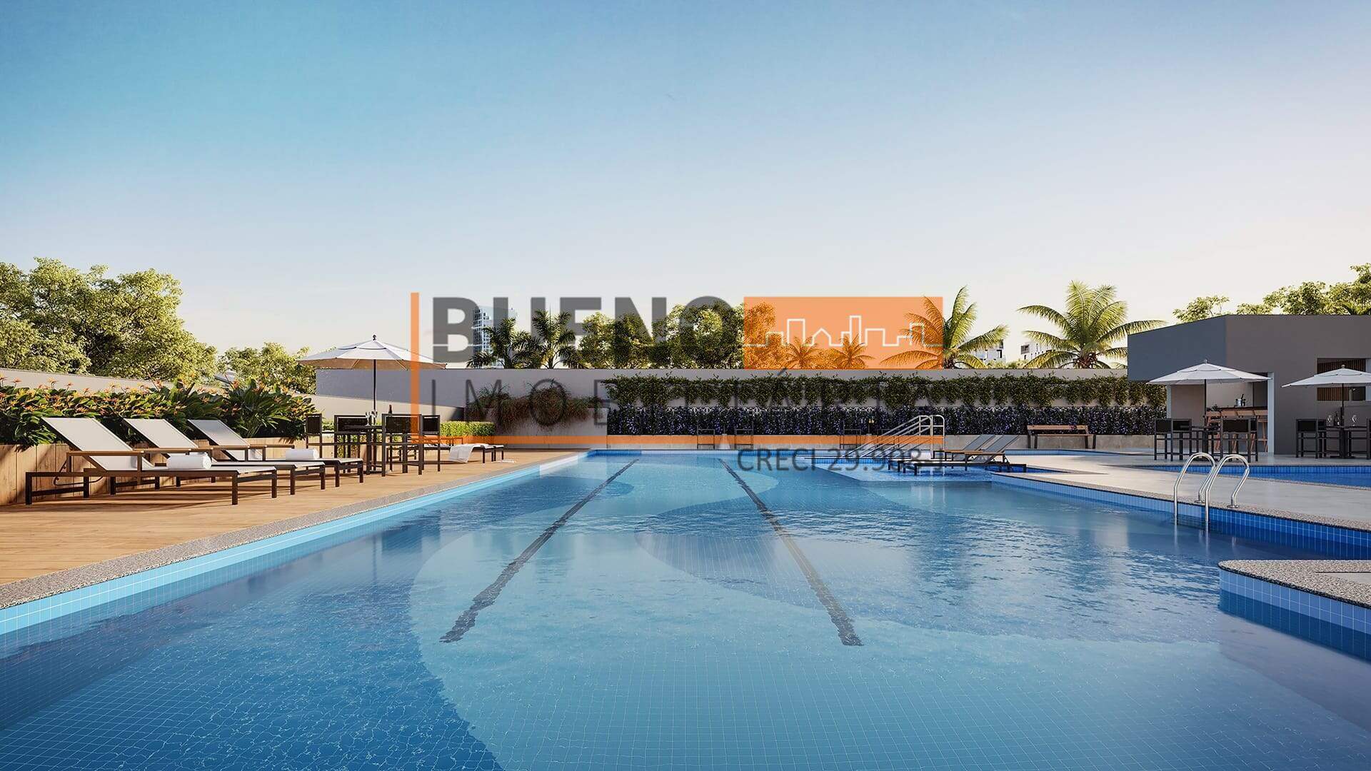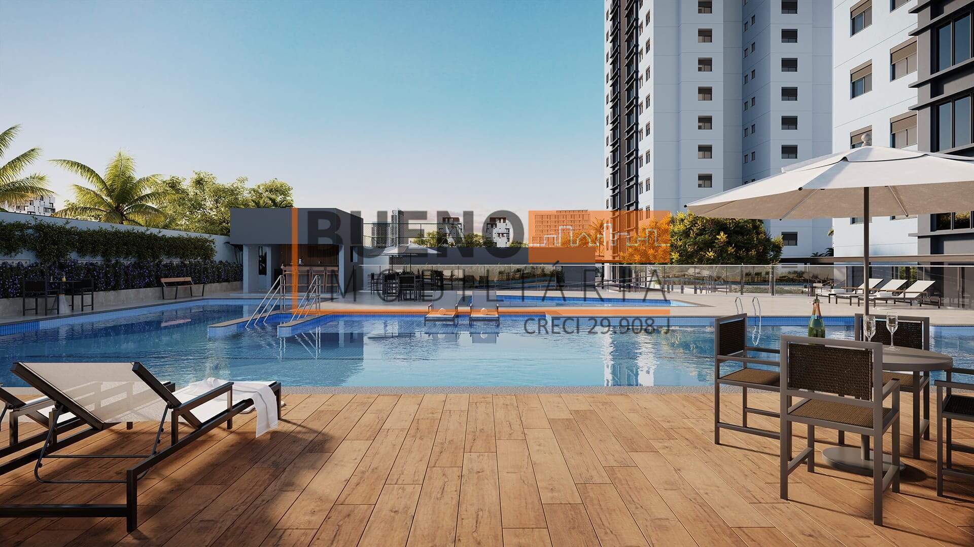 O condomínio oferece estrutura completa, incluindo piscina, academia, salão de festas e áreas de convivência integradas ao paisagismo.