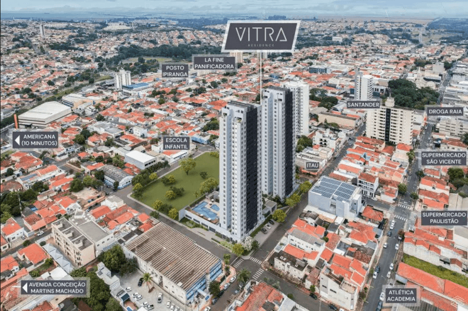 O Vitra Residence é um empreendimento moderno no coração de Santa Bárbara d’Oeste, com plantas de 77 m² e 88 m², acabamentos de alto padrão e opções de layout personalizável.